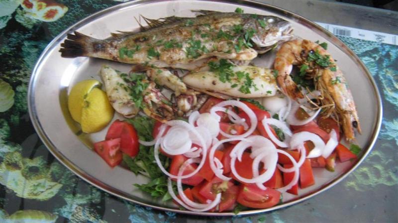 Θαλασσινά Ψητά φρέσκα ψάρια & μαλάκια τσιπούρα, γλώσσα, λαγόψαρα, χταπόδι, καλαμάρια, μιξ θαλασσινών με σαλάτα, γαρίδες σαγανάκι, αθερίνα, σουπιά κ.α.